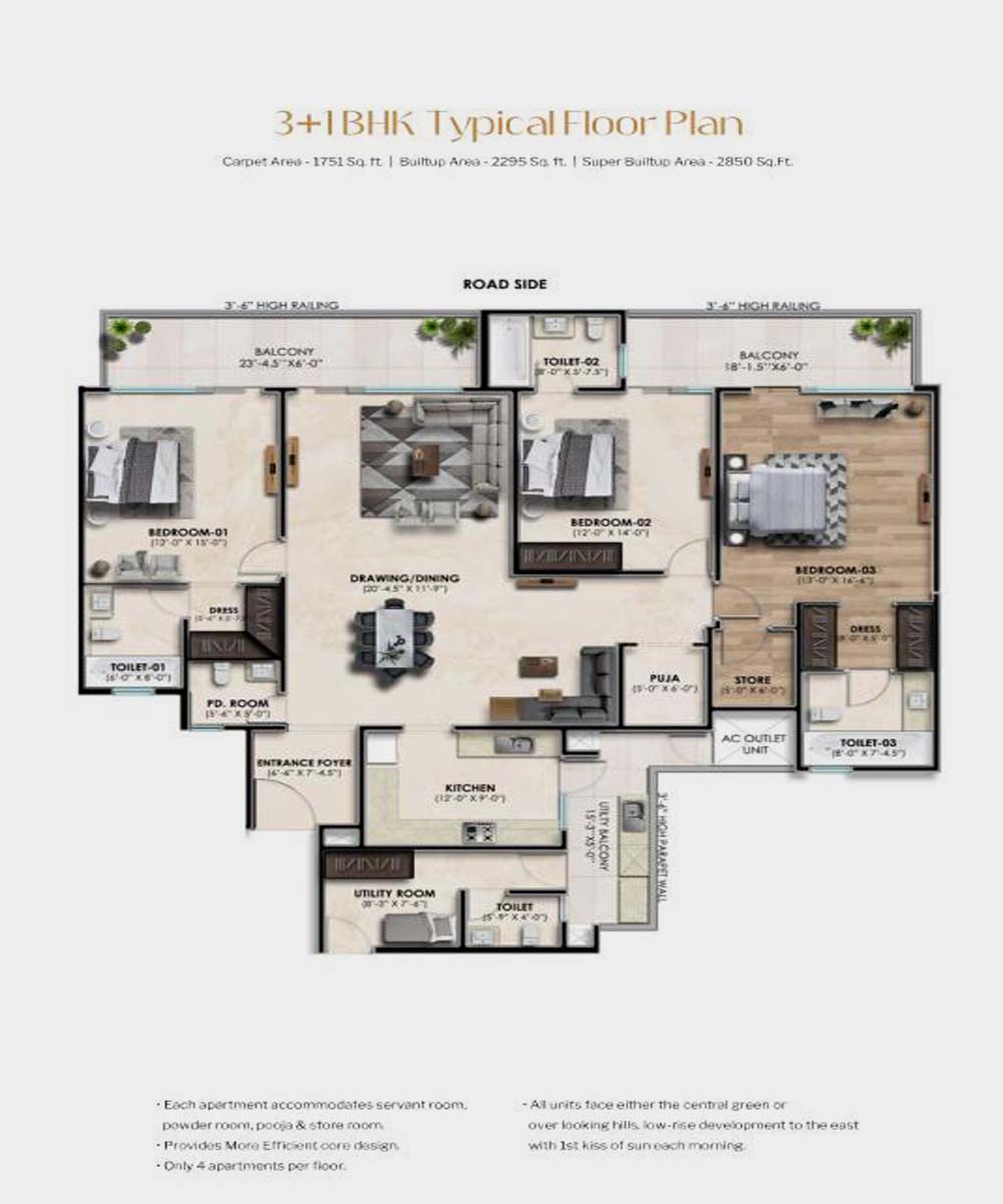 3 BHK (Standard) - Size (SQ. FT.)