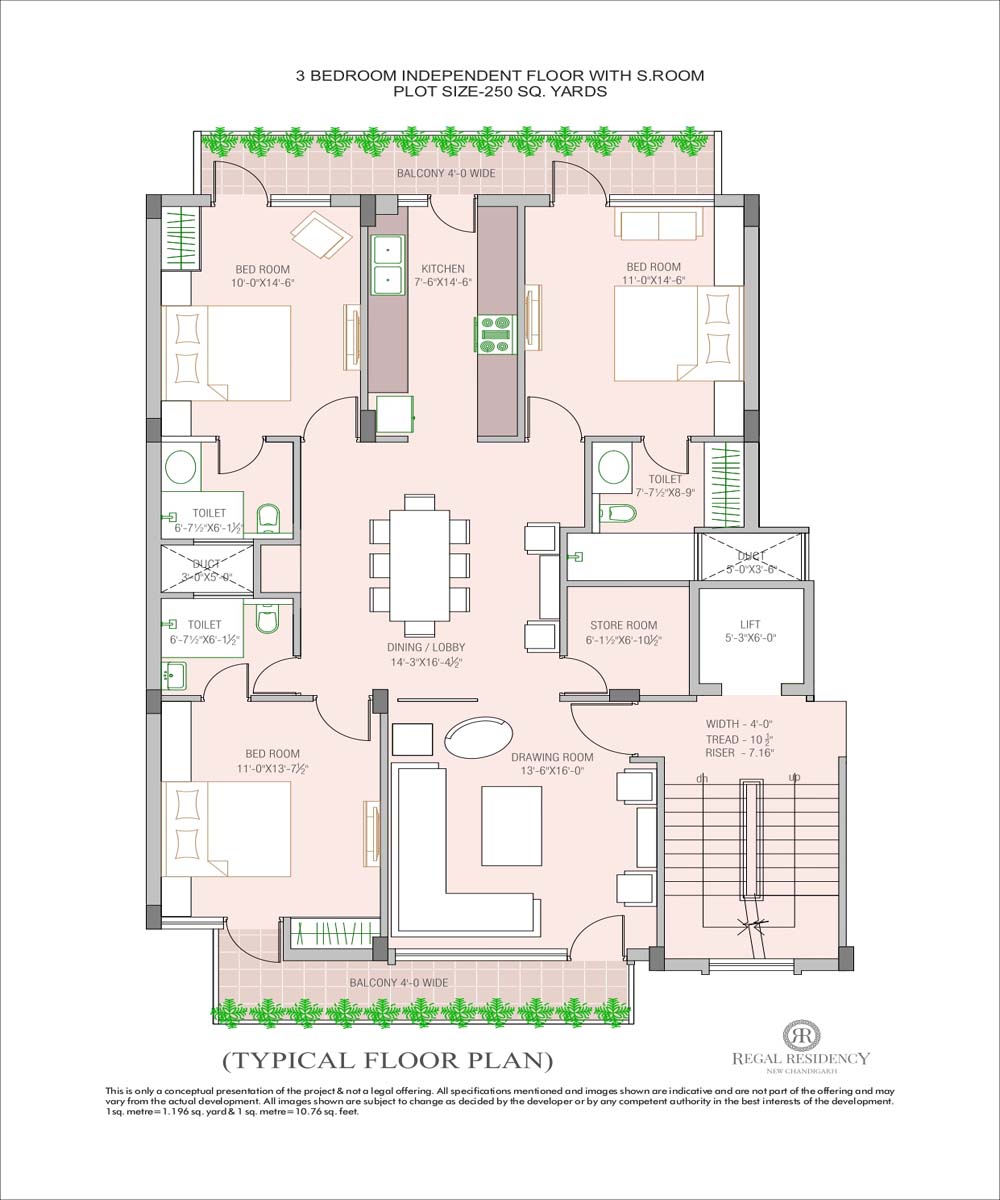 3 BHK (Standard) - Size (SQ. FT.)
